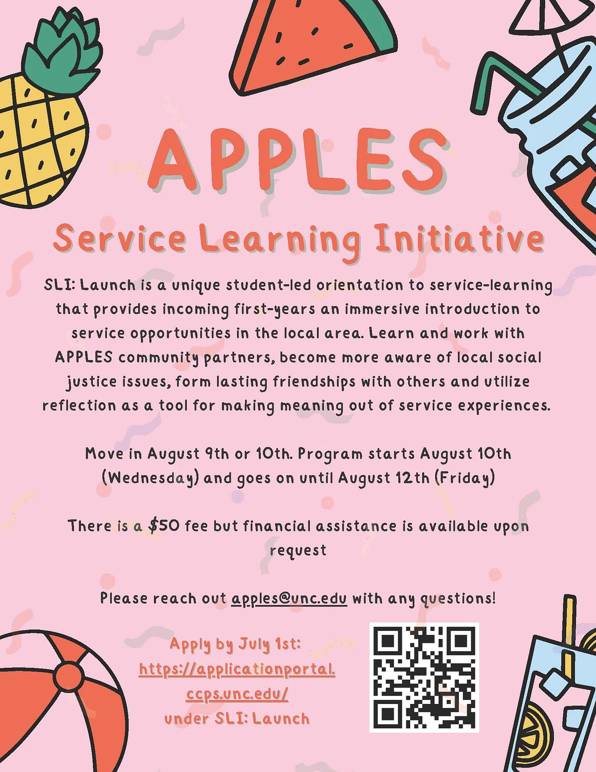 The APPLES Service-Learning Initiative (SLI) is a unique student-led program that uses service, learning, and reflection to introduce students to both the UNC-Chapel Hill campus and parts of the off-campus Chapel Hill-Carrboro communities. Incoming first-year and transfer students can apply to move to campus early and participate in a three-day program from August 10-13. Help spread the word and encourage your first-year or transfer student to apply online by July 1 through the CCPS Application and Nomination Portal.