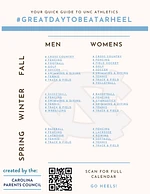 It's always a Great Day to be a Tar Heel! Stay up to date on what's happening in Carolina Athletics and support our Tar Heels across all sports, through each season with this quick Year-Round Guide to UNC Athletics (right-click each sport for a direct link on the PDF or scan the QR code for a composite calendar).